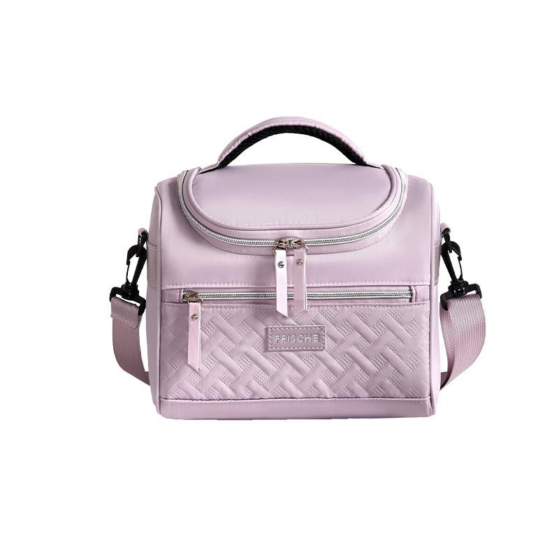 This lunch bag features a modern, minimalist design made from durable polyester material. It offers effective insulation, keeping meals warm or cool for hours while resisting stains and dirt. The bag is lightweight and equipped with a convenient shoulder strap for easy transport.