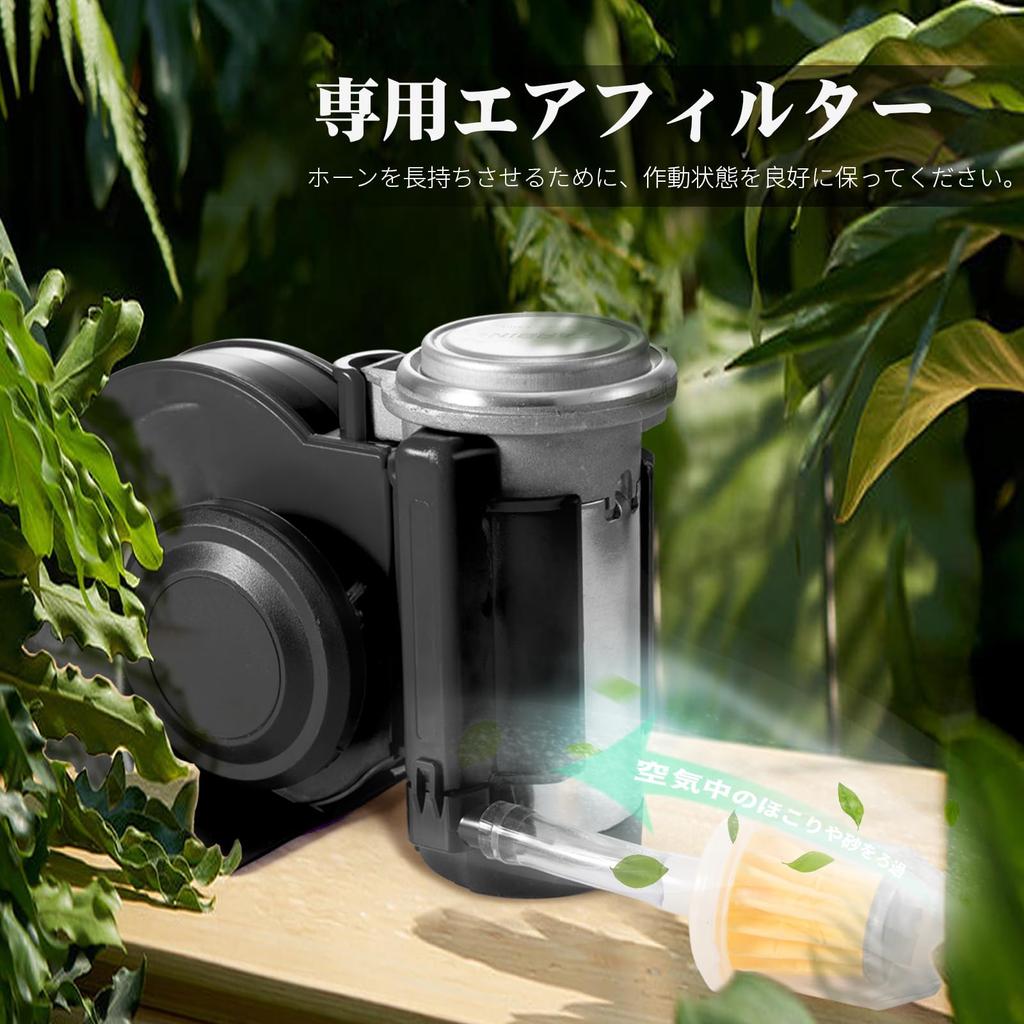 [Компрессор в комплекте] Модернизированный компрессор с медной обмоткой, быстрый отклик, мощный нагнетатель, не требуется воздушная трубка или внешний источник воздуха. В комплект также входит фильтр, который устанавливается в воздухозаборник клаксона для фильтрации пыли и посторонних частиц в воздухе, обеспечивая срок службы насоса.