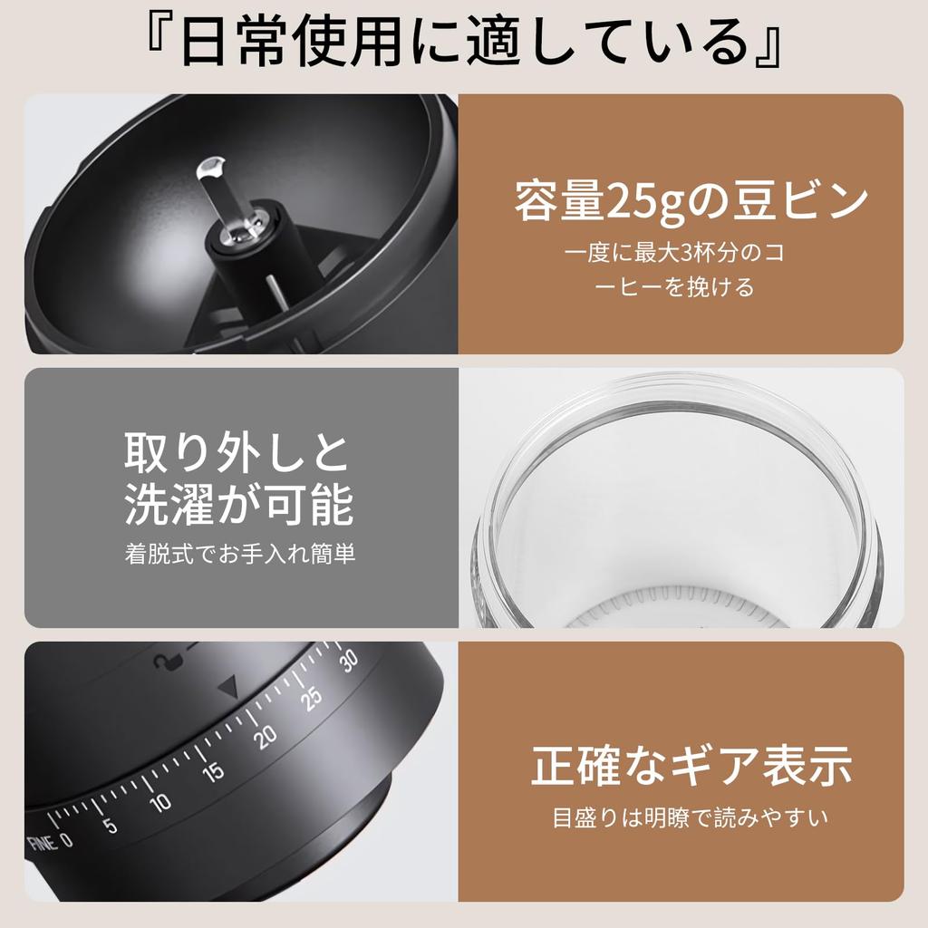 [Простой в эксплуатации и чистке] Эта электрическая кофемолка имеет простой дизайн и проста в эксплуатации; просто нажмите и удерживайте, чтобы активировать его. Функция автоматического отключения после завершения помола делает его простым в использовании. Контейнер для кофейных зерен съемный, что облегчает чистку и обслуживание. Электрическая кофемолка сохраняет чистоту зерен при каждом помоле, обеспечивая чистый, восхитительный кофе.. *Прозрачную чашку, в которую помещаются молотые кофейные зерна, можно мыть. Однако не подвергайте другие части воздействию воды, так как это может вызвать неисправность.