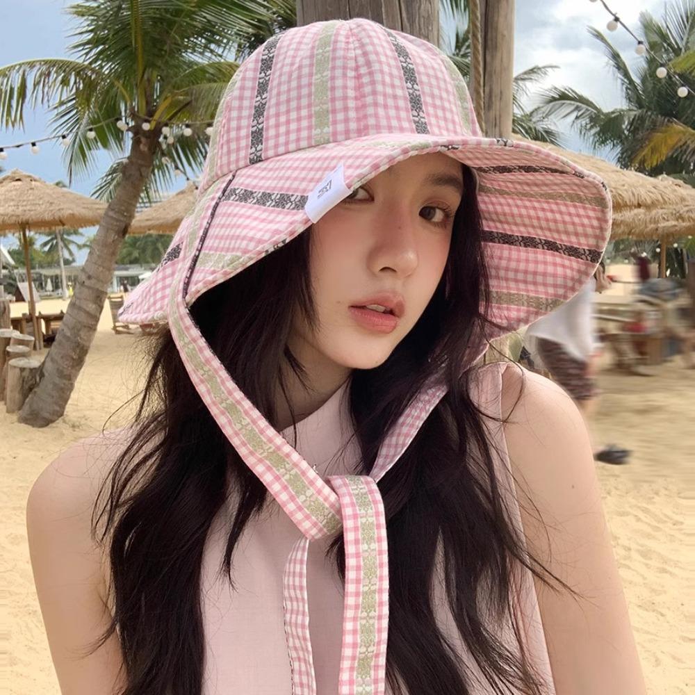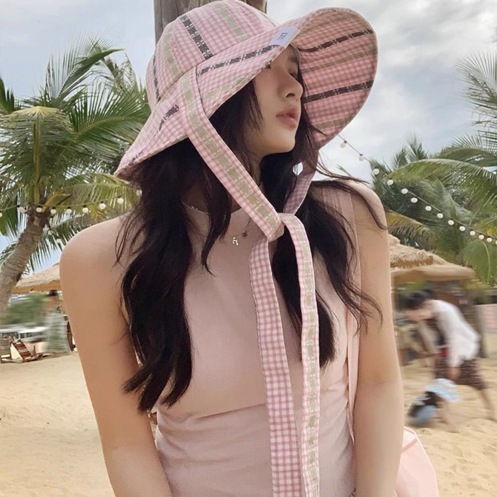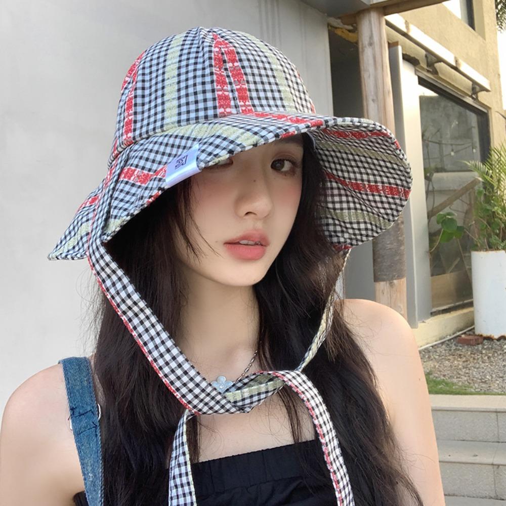Защита от УФ-лучей Морская рыбацкая шляпа с большими полями Клетчатая панама Модная шляпа от солнца на завязках Пеший туризм