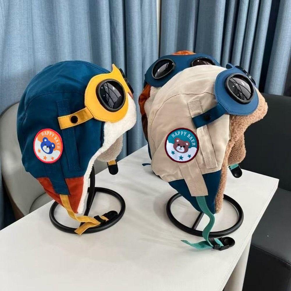 Новая милая мультяшная шапка-пилот, ветрозащитная, холодостойкая шапка с защитой ушей, с очками, утолщенная теплая шапка, зима — купить товар онлайн с бесплатной доставкой по всему миру!
