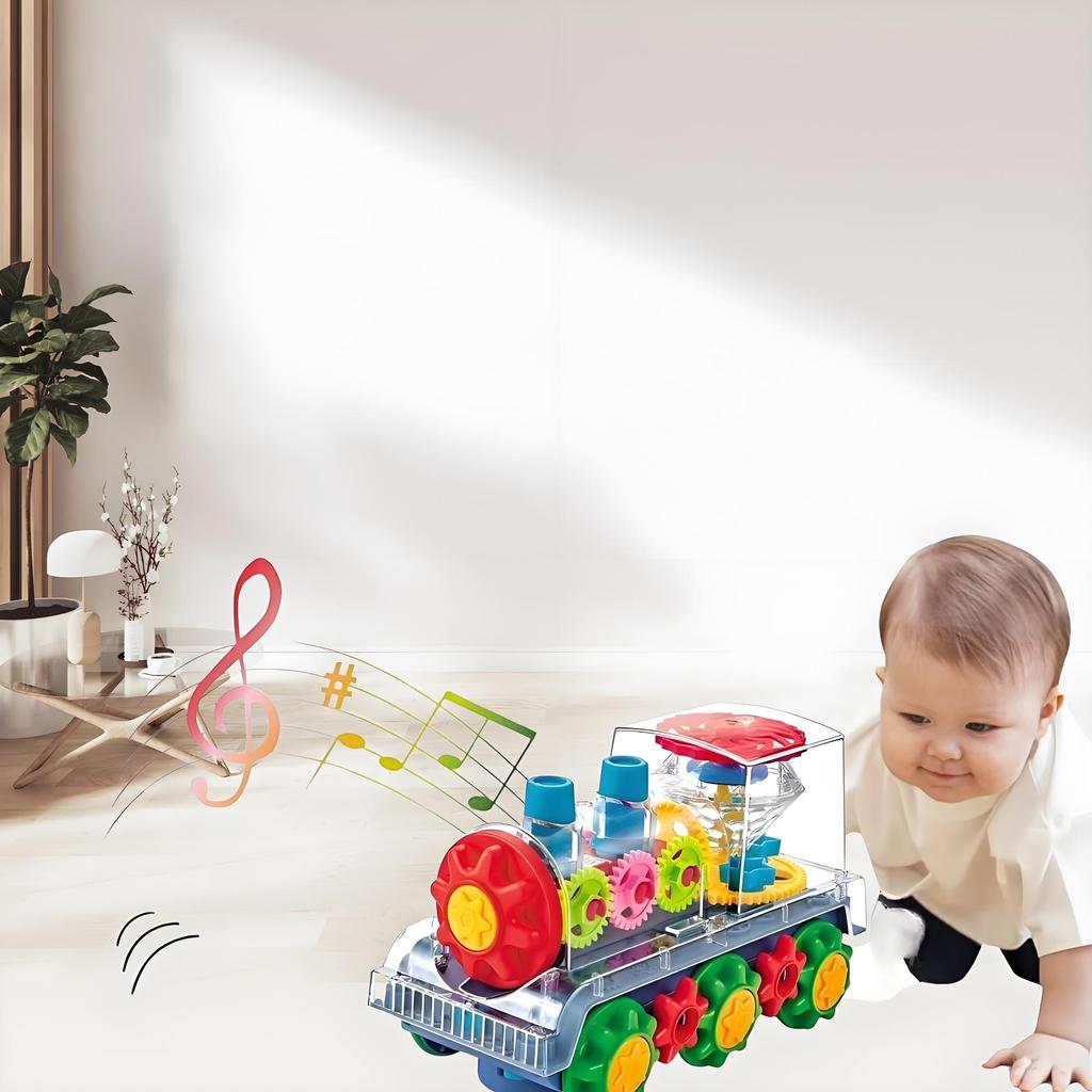 Электрическая игрушка с зубчатой передачей и мигающими огнями | Прозрачная обучающая STEM-игрушка | Музыкальный развивающий подарок для детей 3-8 лет