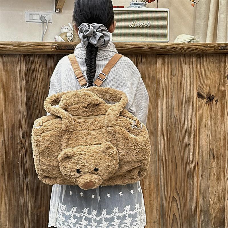 Милый плюшевый рюкзак-медведь для детей, вместительный, уютный, унисекс, школьная сумка
