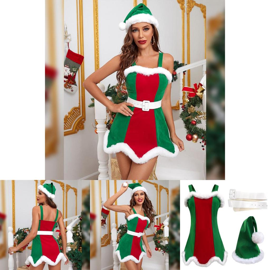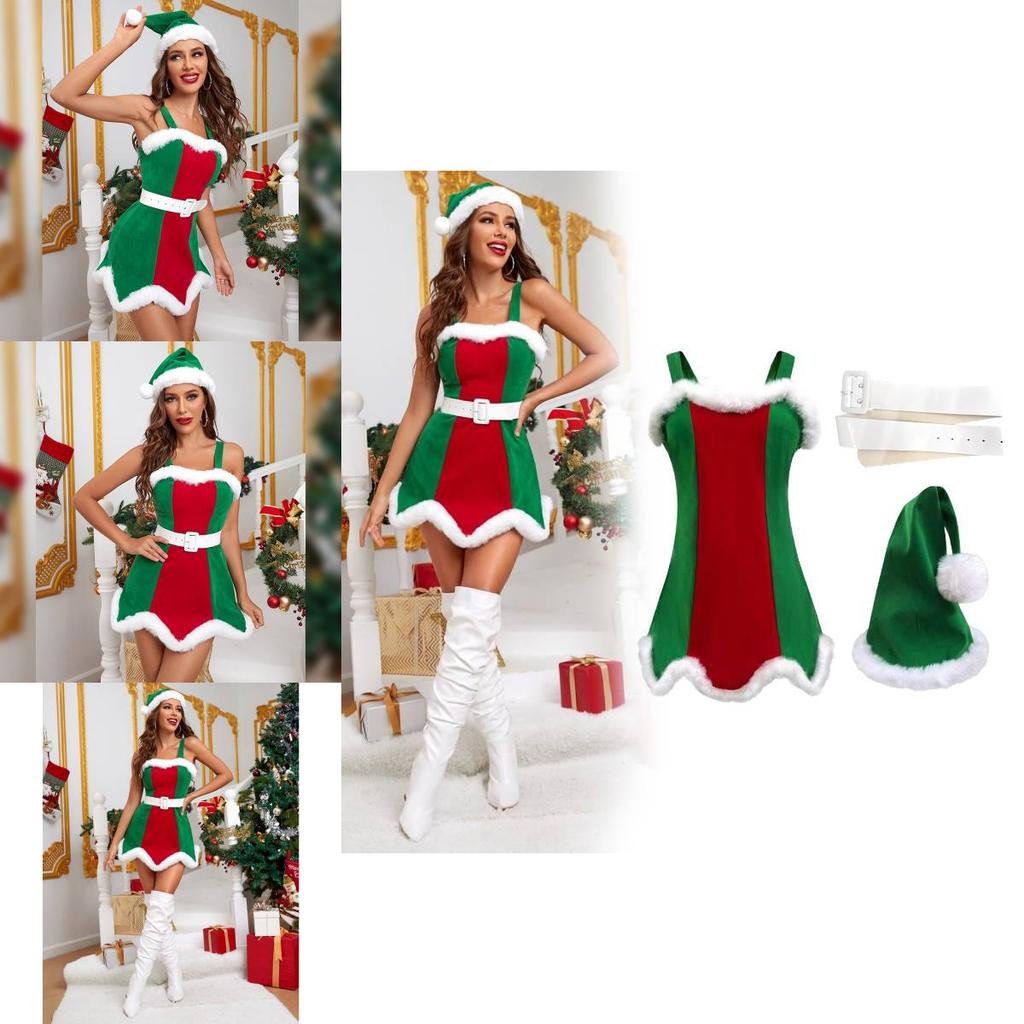 Этот рождественский костюм для женщин отличается праздничным дизайном, подходящим для сценических выступлений и праздничных вечеринок.. Изготовлено из прочной полиэстеровой ткани, имеет приблизительные размеры, с размерами от S до XL. Костюм включает шляпу, платье и пояс в яркой цветовой гамме, идеально подходящие для тематических мероприятий.