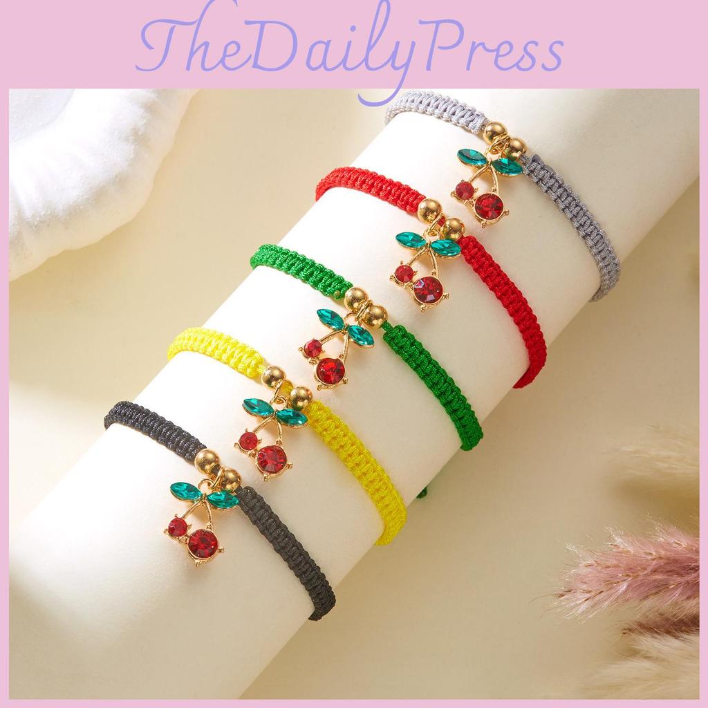 женские плетеные браслеты, украшения на фруктовую тематику, аксессуары на запястье к концу года, браслеты в подарок для путешествий, женские украшения ручной работы, аксессуары с мотивом вишни, модные плетеные браслеты