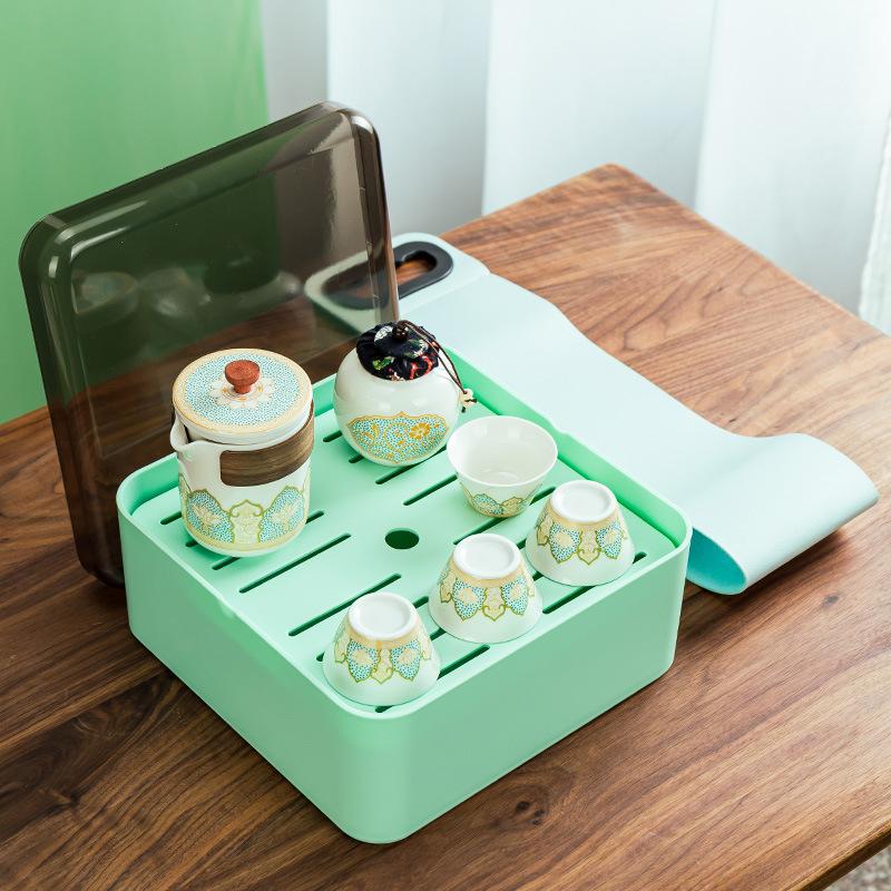 Креативная керамическая быстрая чашка, дорожный чайный набор с подносом, чайный набор Кунг-фу, портативный подарок для улицы