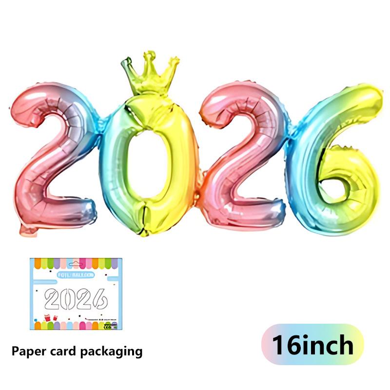 Разноцветные шары-цифры 2026 16 дюймов фольгированные шары-короны Новый год Рождество Выпускной Вечеринка по случаю дня рождения Украшение