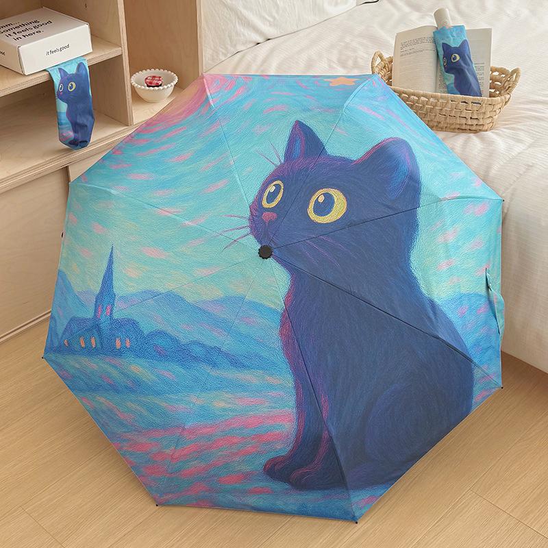 Желто-синяя масляная живопись кошка складной зонт дождь солнце двойного назначения автоматический солнцезащитный зонт защита от солнца и УФ-излучения портативный