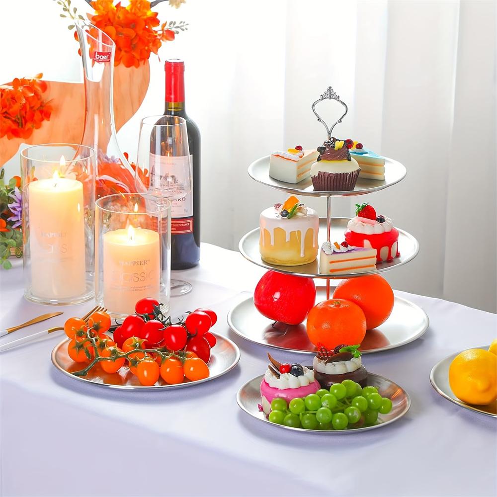 1 шт. Многоярусная подставка для десертов из нержавеющей стали, поднос для фруктов, подставка для десертного стола, стойка для закусок, двухъярусная-