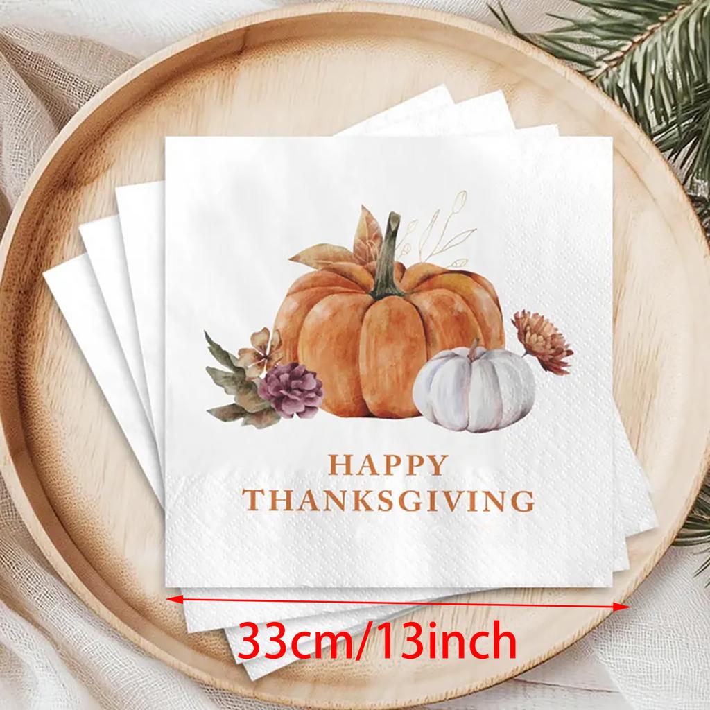 Пользовательские 40 шт. Салфетки на День благодарения Тыква Осенний декор День благодарения Хэллоуин Вечеринка Декор стола Коктейль Обед Ужин Салфетка