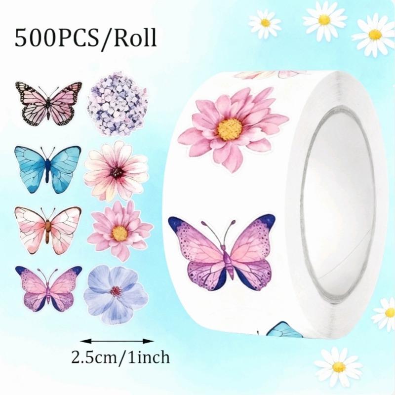 500 шт./рулон Наклейки с бабочками и цветами Наклейки Эстетичные Мультяшные Этикетки для запечатывания Декор Канцелярские товары Украшения для дневника Наклейки