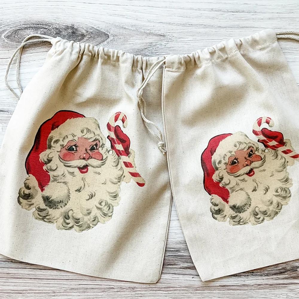 5/10/20Pcs Vintage Inspired Santa Drawstring Gift Bag Christmas Wrapping Santa Sack Holiday Celebrations New Year Party Decor — купить товар онлайн с бесплатной доставкой по всему миру!