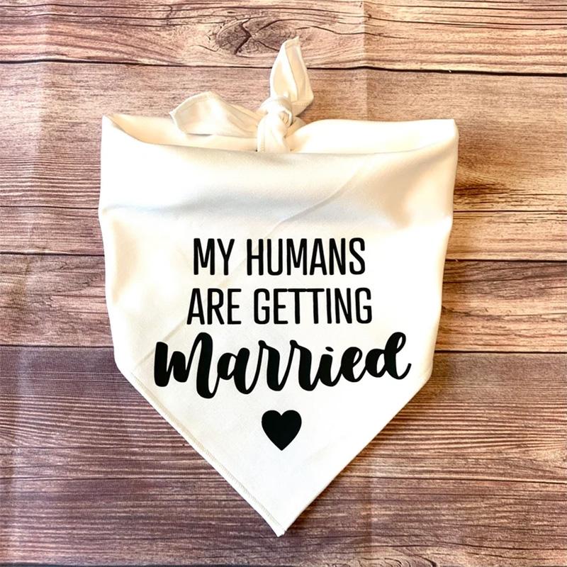 Белая бандана для собак "Мои хозяева/Наши хозяева женятся" для свадьбы, помолвки, девичника, украшения для фотосессии, подарка.