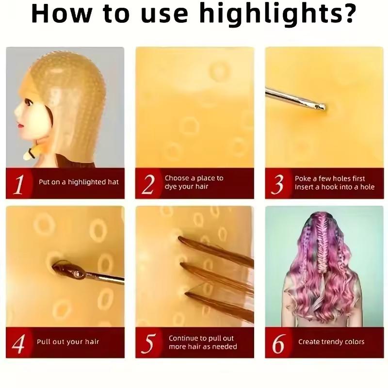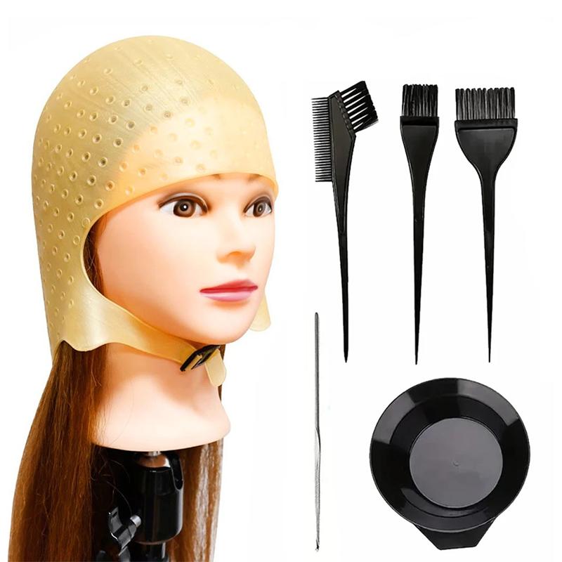 1 комплект Профессиональный набор для окрашивания волос Многоразовая силиконовая шапочка с крючком-иглой Миска для смешивания Кисть для перемешивания Салонные инструменты для красоты волос