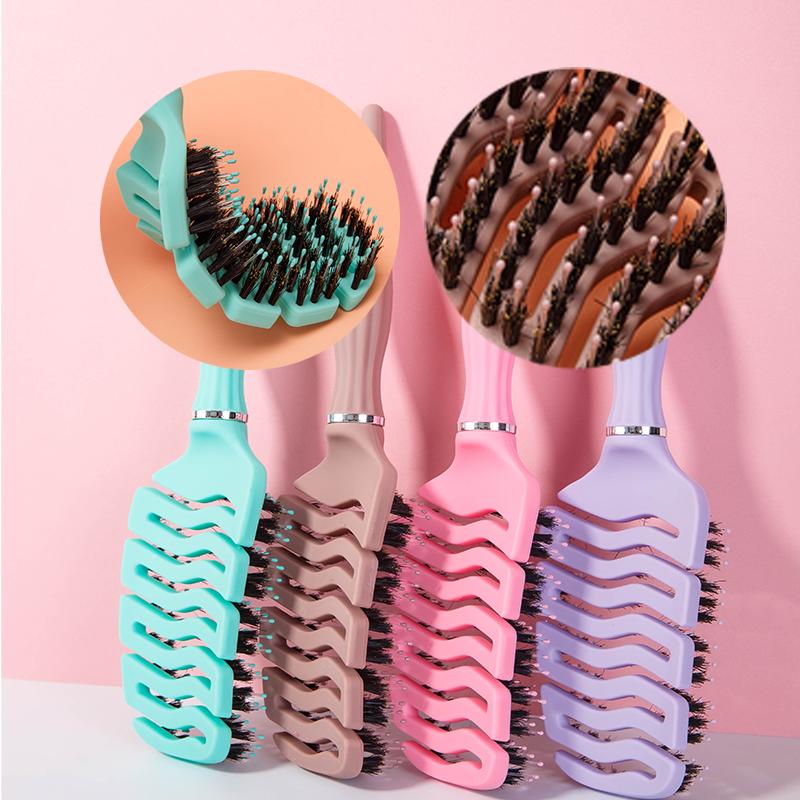 1 шт. Изогнутая вентилируемая расческа из щетины кабана Профессиональная расческа для массажа кожи головы Распутывающая расческа для кудрей Антистатическая расческа Салонный инструмент для укладки