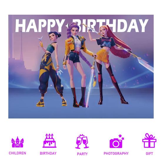 Yousheng Background Cloth Demon Movie Hunters Happy Birthday Banner Backdrop Hanging Cloth Decoration Kids Party Supplies