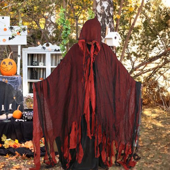 Загадочные элементы дизайна: Этот плащ с капюшоном, сочетающий в себе ткань и сетку с отверстиями, излучает ауру тайны и ужаса, поднимая ваш образ персонажа за счет добавления нотки реализма к вашему костюму.