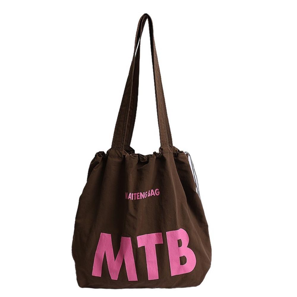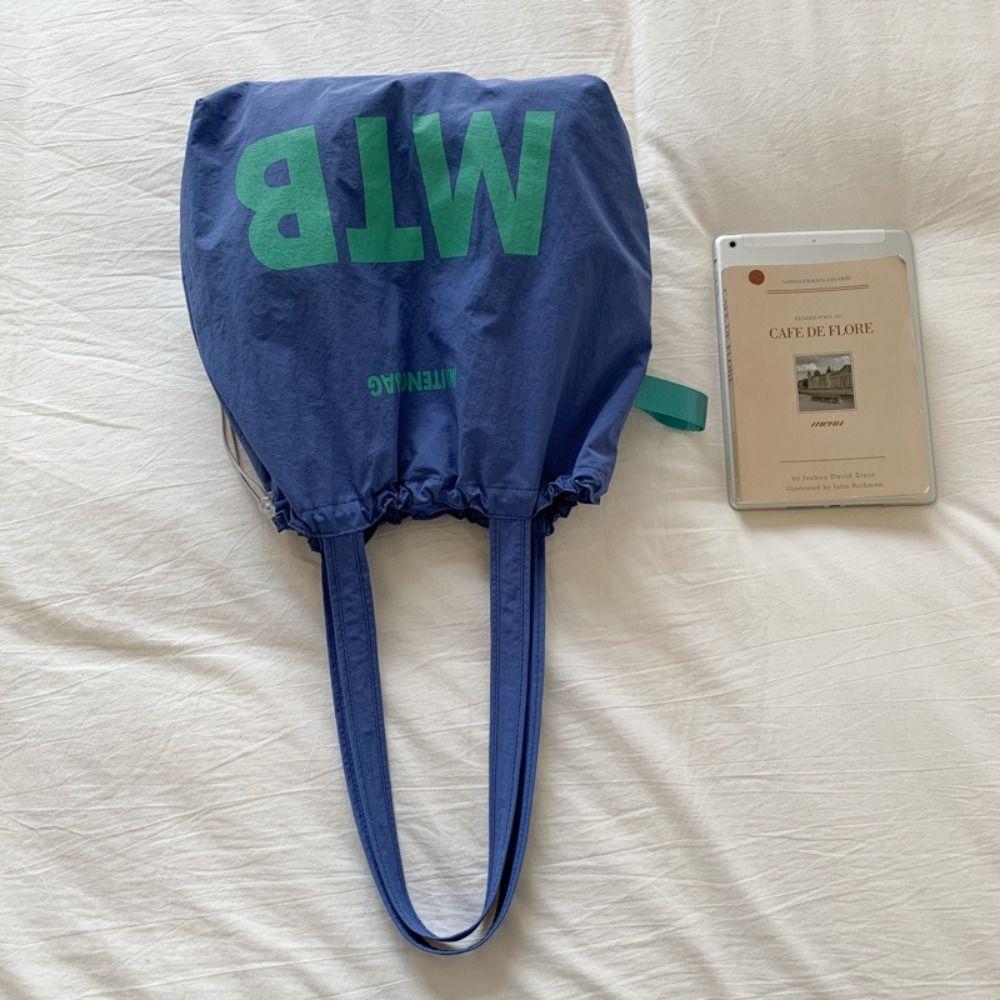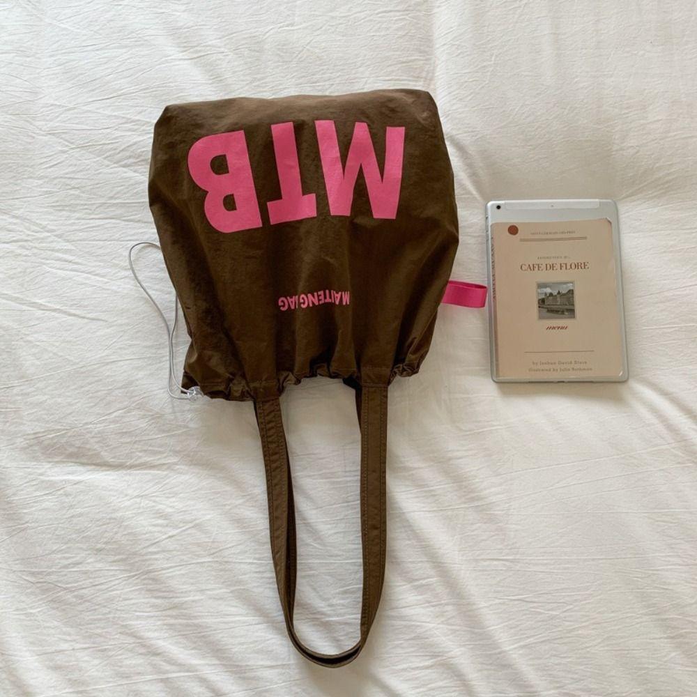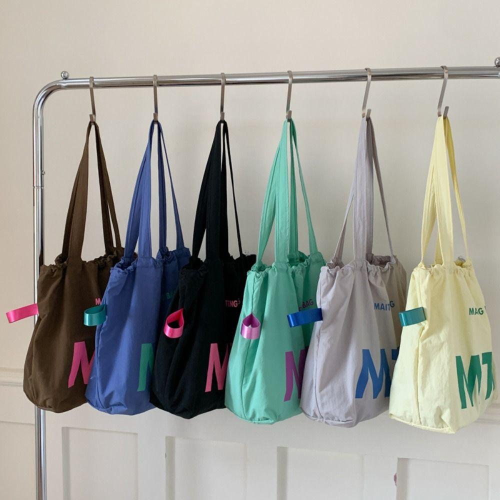 Light Weight Letter Shoulder Bag Nylon Tote Bags Simple Drawstring Bags Ladies