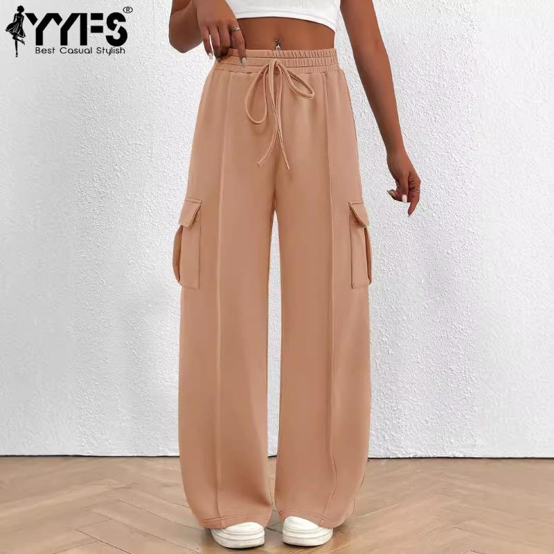 YYFS Женские модные повседневные однотонные брюки с высокой талией и принтом, брюки и капри