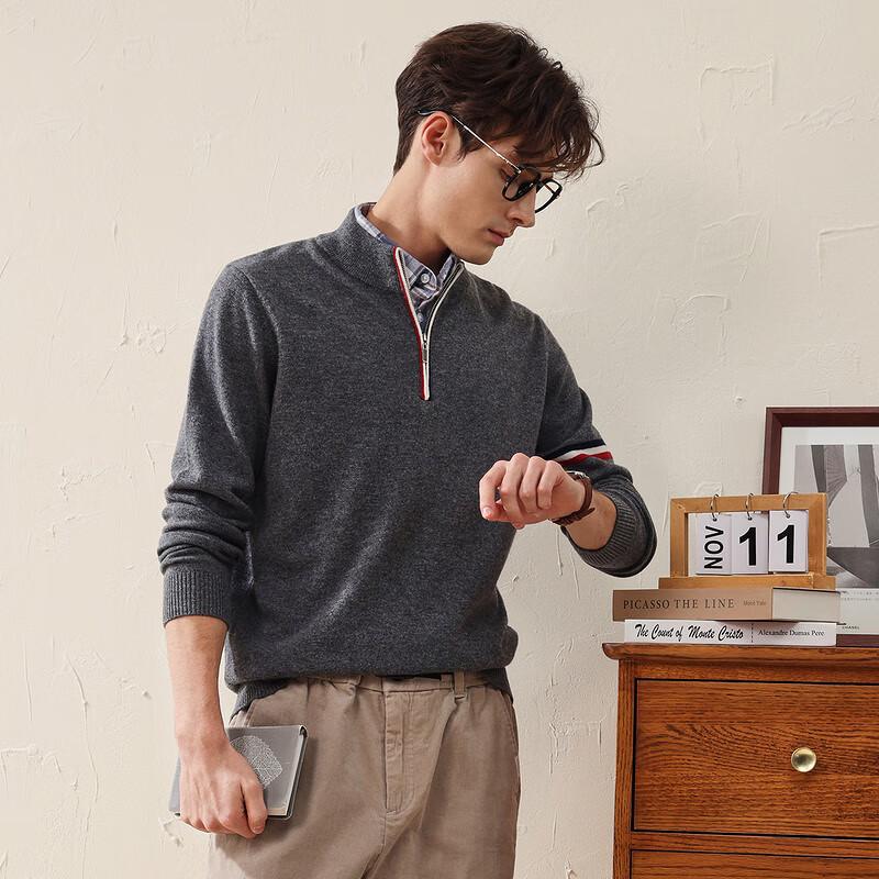 Komonboca Men's Half-Zip 100% Wool Pullover Sweater
