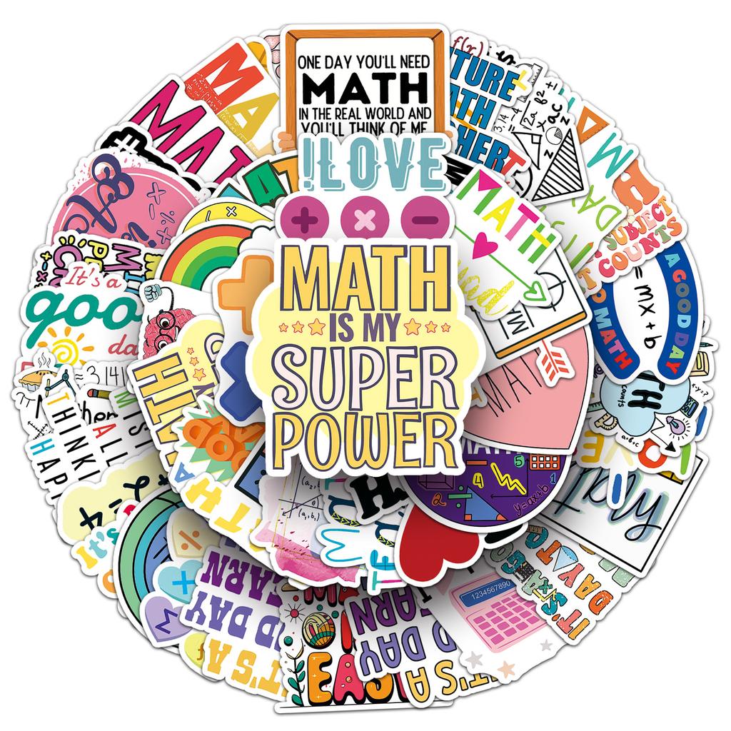 50 Math Doodle Stickers for Water Bottles Laptops Phone Cases Fun Cartoon Decals with English Slogans