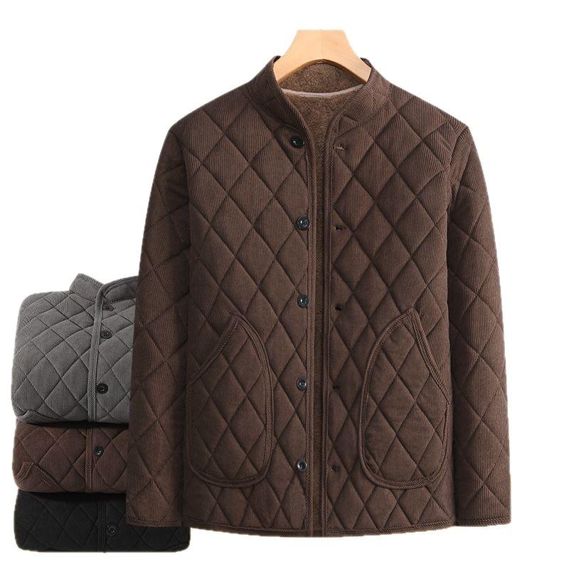 Мужская зимняя куртка ветрозащитная утолщенная стеганая куртка повседневная ромбовидная теплая флисовая подкладка пальто для папы среднего возраста однотонная верхняя одежда для улицы