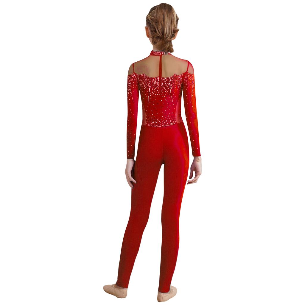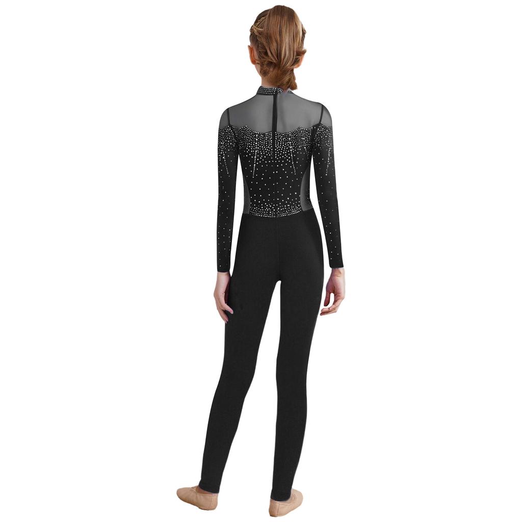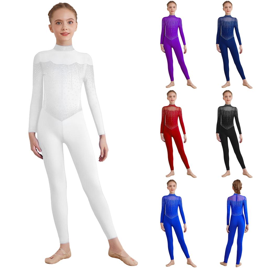 Женский блестящий леотард со стразами на все тело, с воротником-стойкой, длинными рукавами, прозрачными сетчатыми вставками, комбинезон-пэчворк, боди для фигурного катания