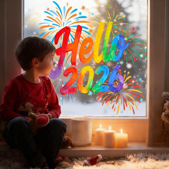 Идеальные для украшения стеклянных дверей и окон, эти многоразовые наклейки создают праздничную новогоднюю атмосферу 2026 года, что делает их незаменимым дополнением к вашим украшениям для вечеринки..
