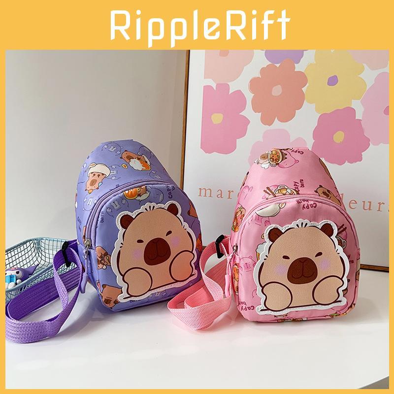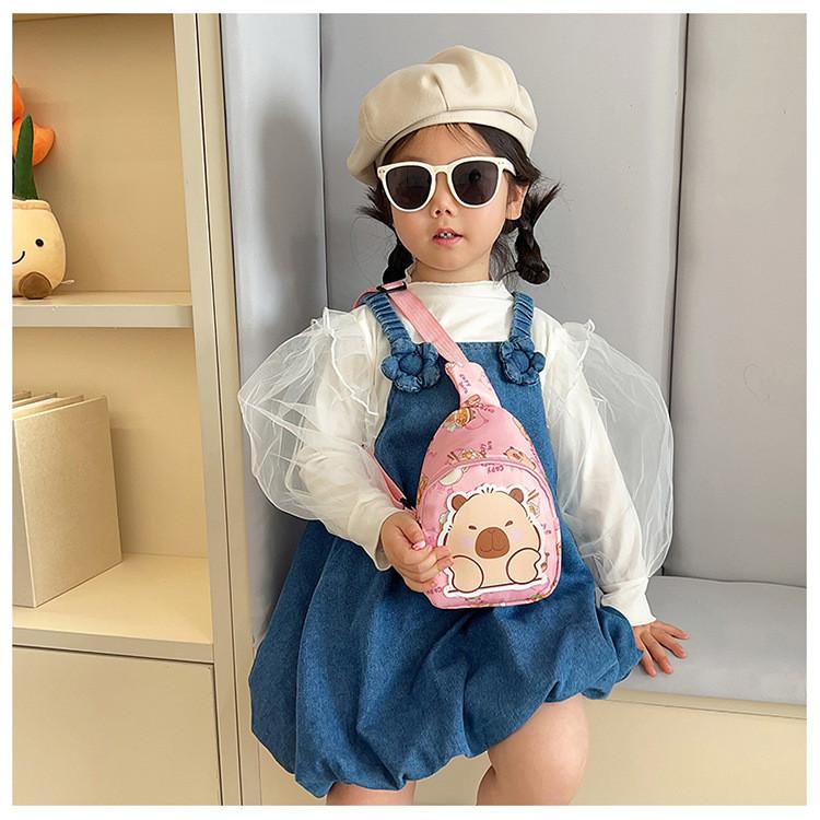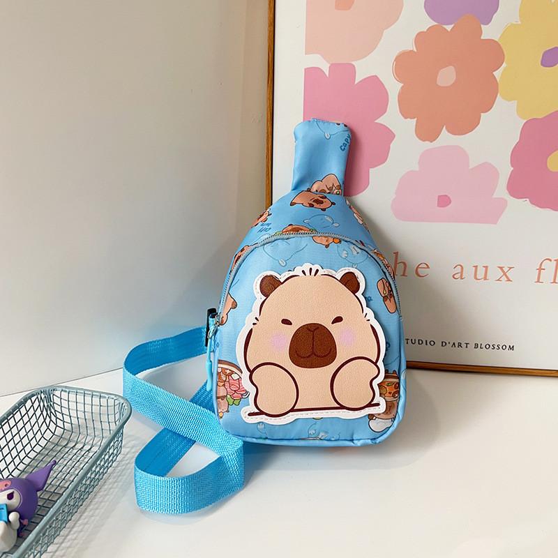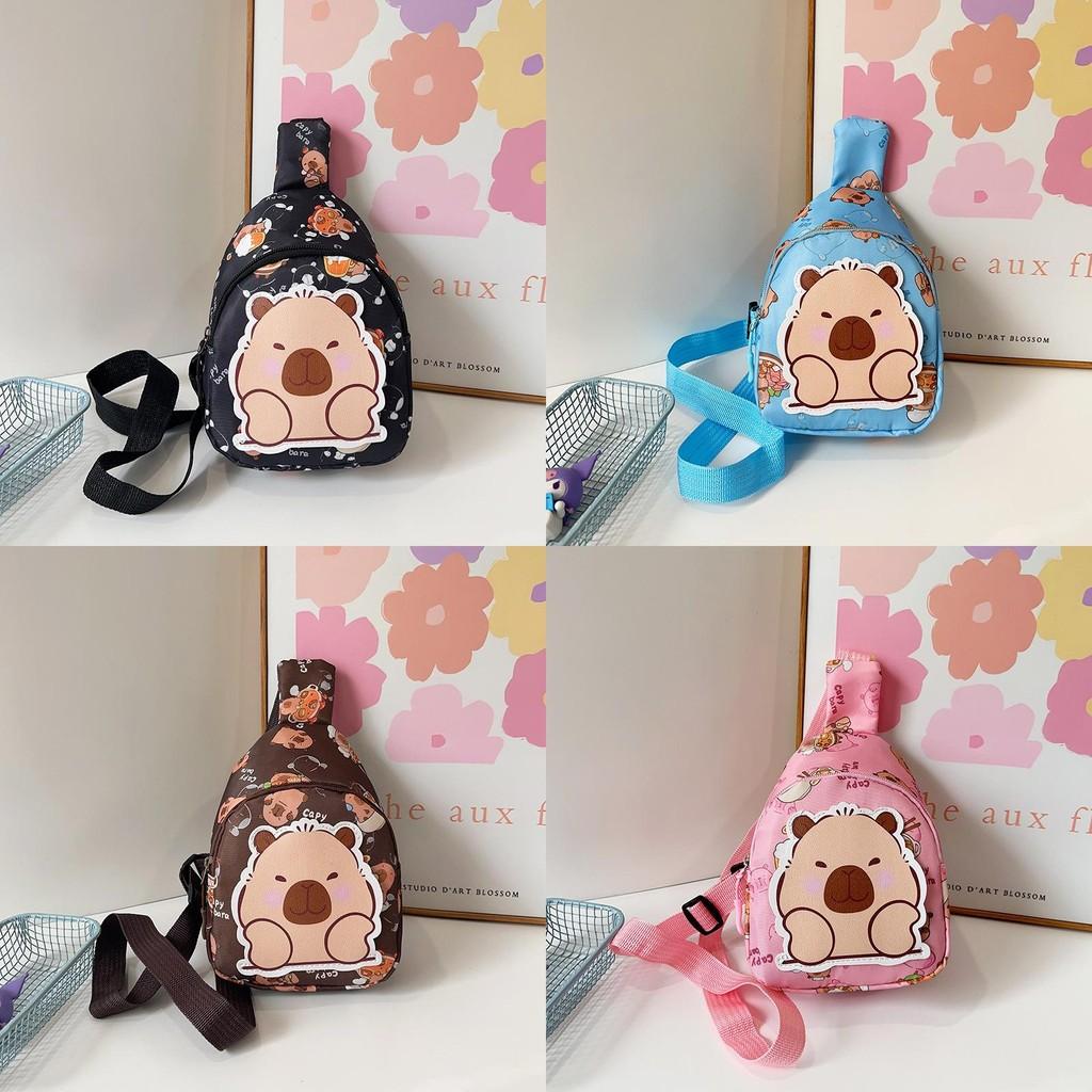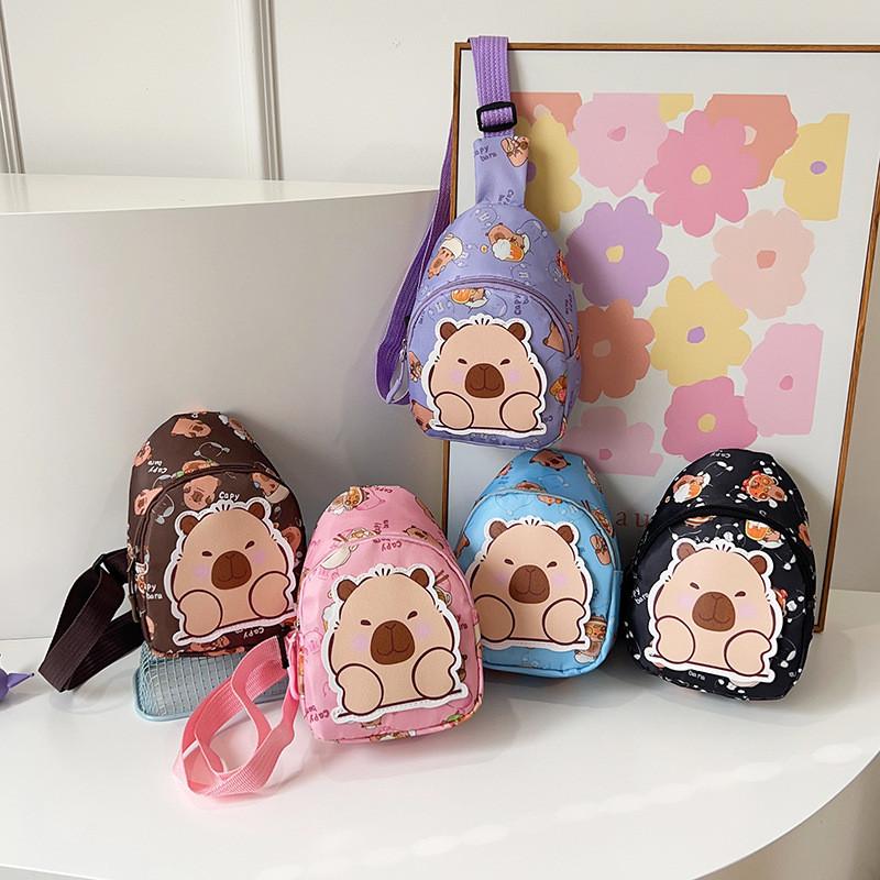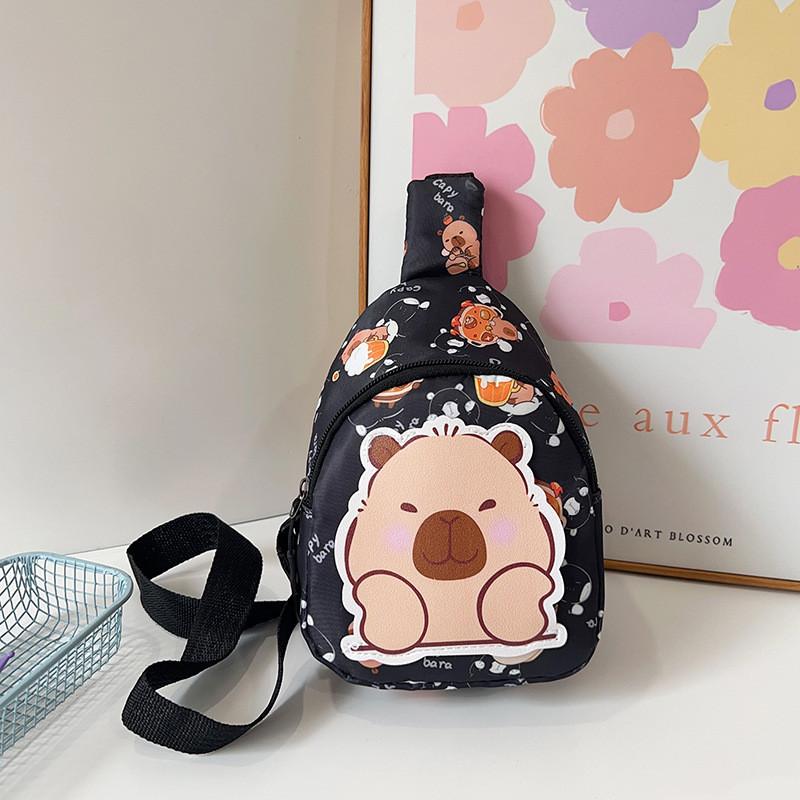 Stylish Cartoon Capybara Shoulder Bag For Boys And Girls Featuring Durable Nylon Material