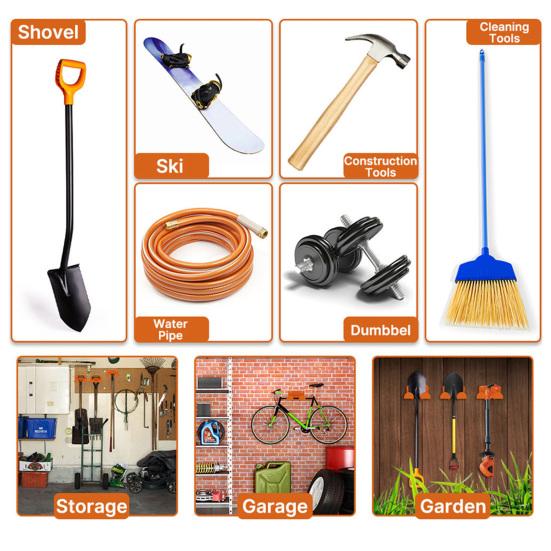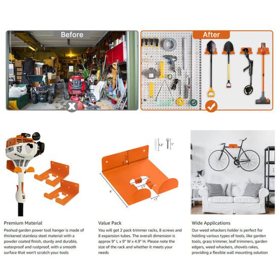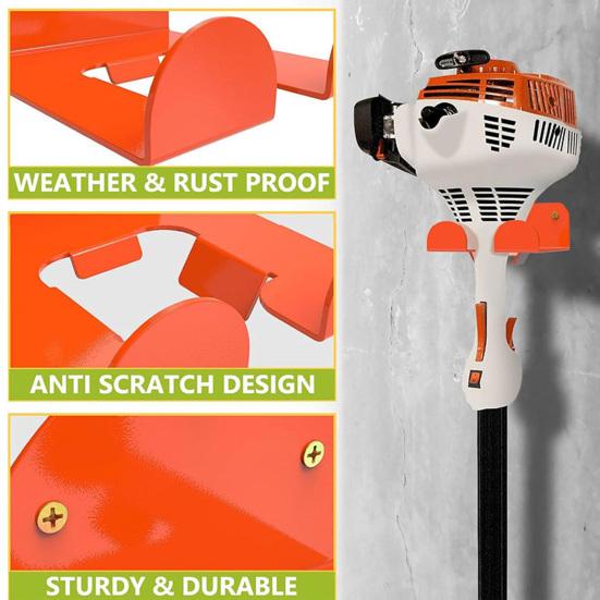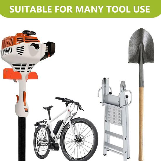 Универсальное решение для хранения инструментов: Помимо триммеров, этот сверхпрочный держатель вмещает широкий спектр садовых и мастерских инструментов, включая бензопилы, лопаты, метлы, кусторезы и многое другое.. Его адаптивный дизайн помогает организовать различные типы оборудования в одном доступном месте, что делает его идеальным для гаражей, сараев, подвалов или складов.