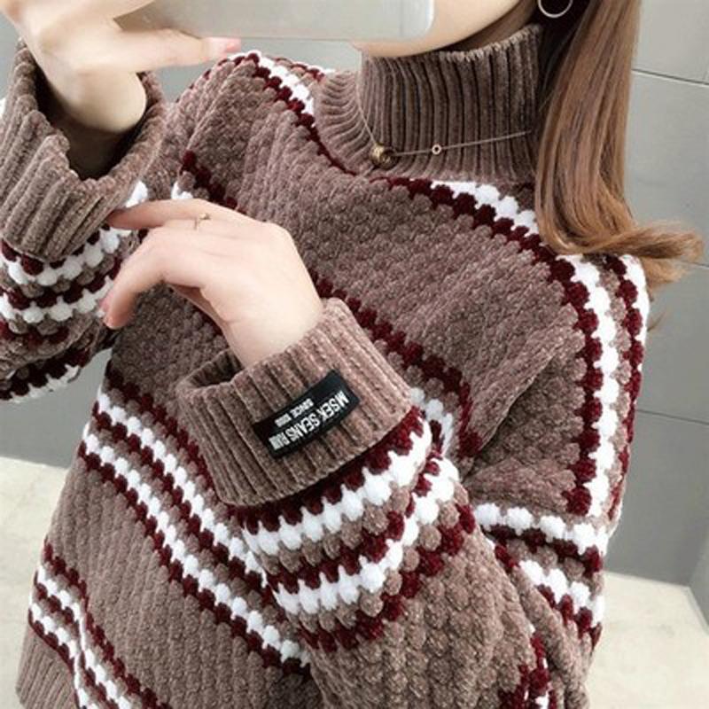 Вязаный свитер из синели, женский повседневный свободный свитер с высоким воротником и длинными рукавами, осень/зима, толстый теплый свитер с низом