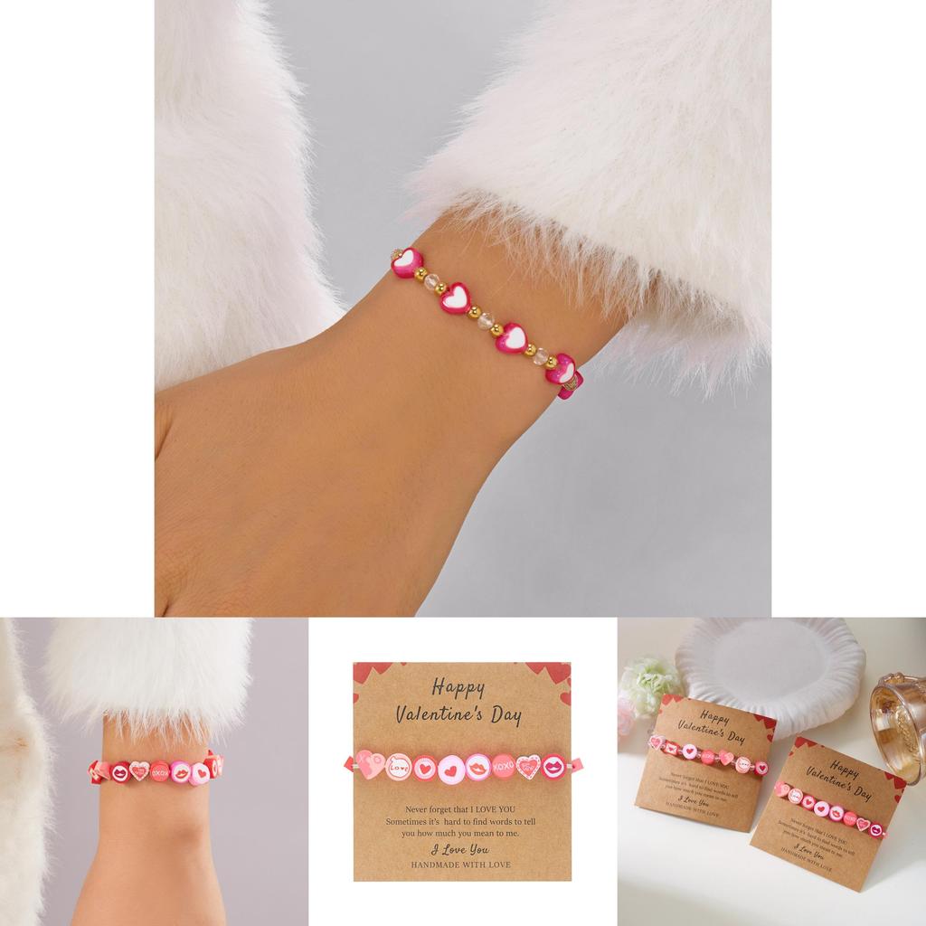 Романтичный браслет ручной работы из полимерной глины в форме сердца с красочным дизайном на День святого Валентина