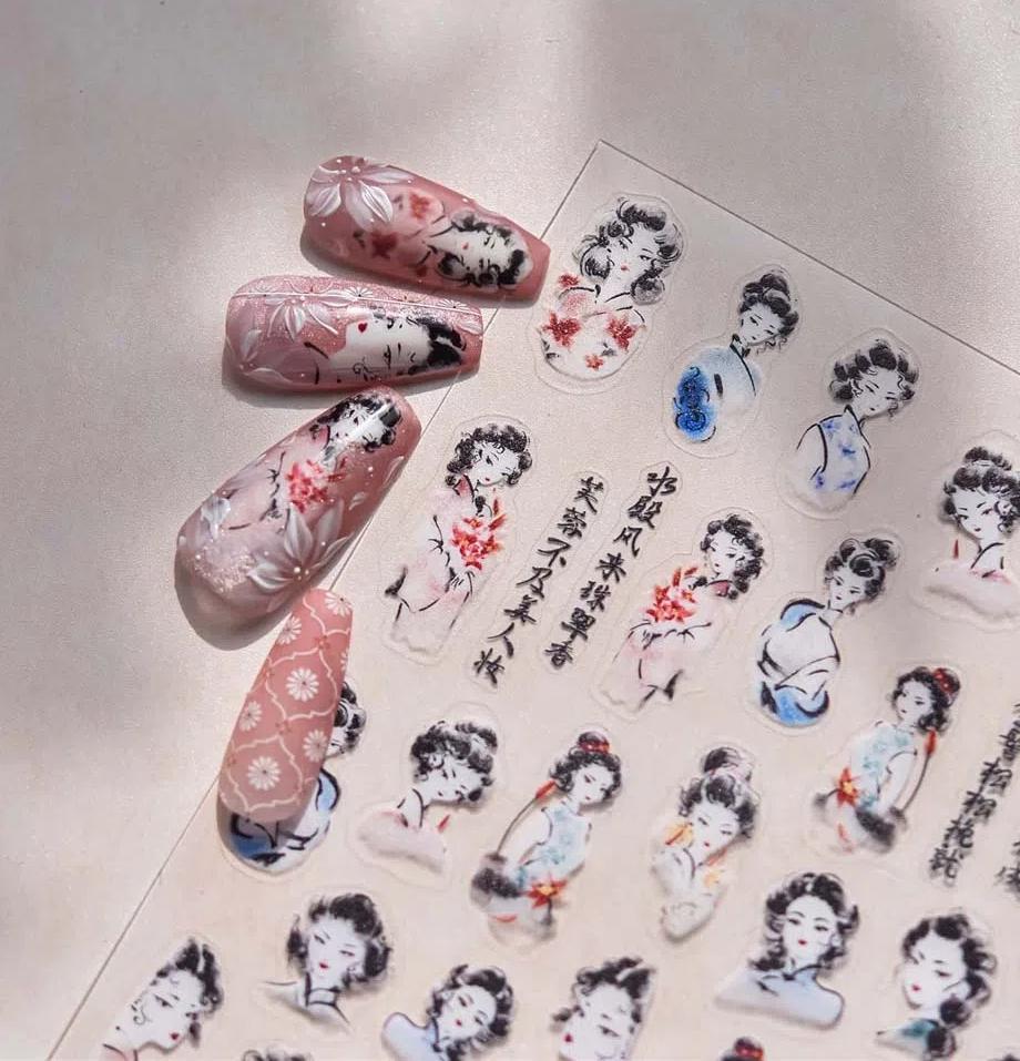 3D Pearl Bow Chinese New Year Nail Sticker Peony Flower Snake Nail Decoration Nail Salon