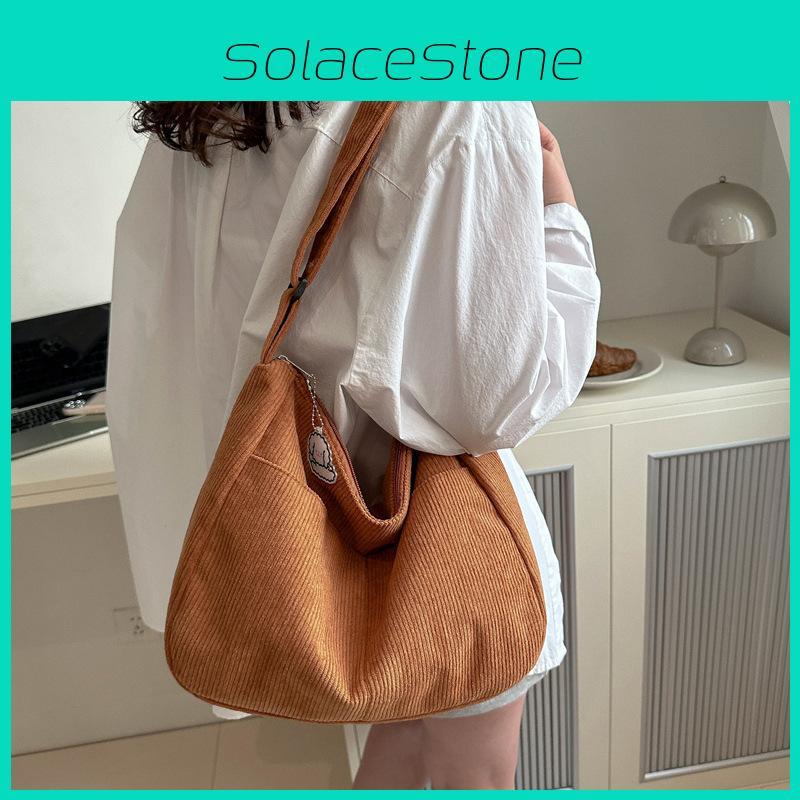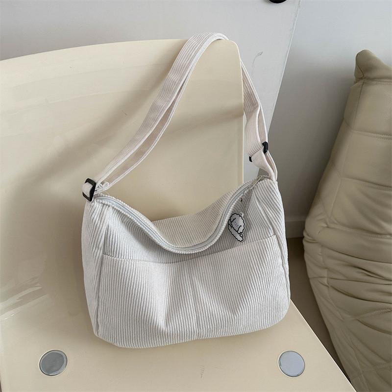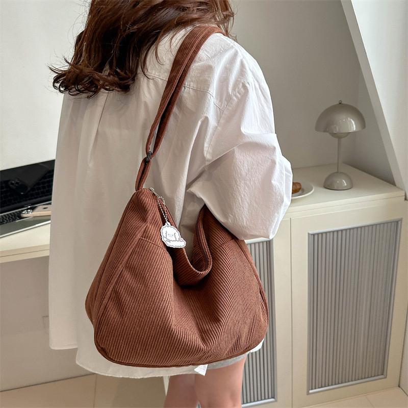Corduroy Crossbody Tote Bag For Women Large Capacity Zippered School Commute Daily Essentials