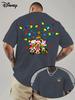 Disney Микки Рождественская Мультяшная Футболка Мужская Мода Буквенный Мультяшный Дизайн Дышащая и Легкая Повседневная Футболка с Коротким Рукавом