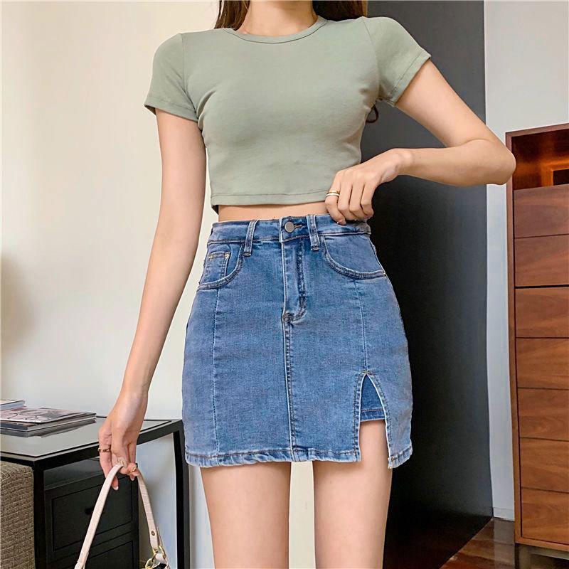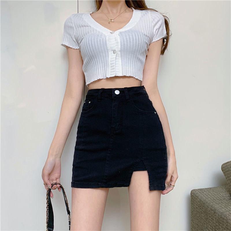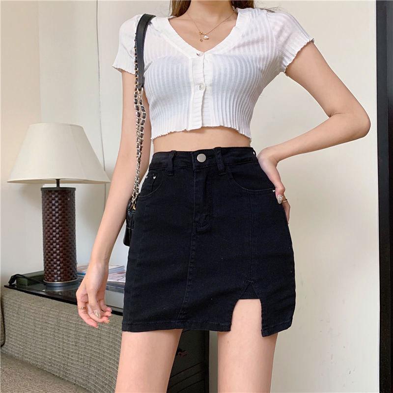 Юбка-трапеция с высокой талией, короткая юбка-карандаш, юбка-карандаш с разрезом на бедрах, черная юбка Ms. Летняя модная джинсовая короткая юбка