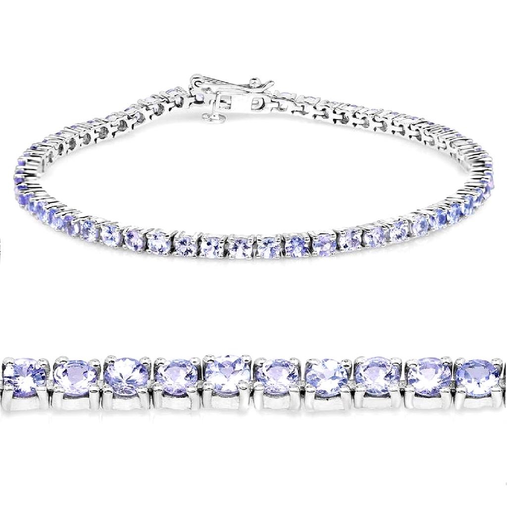 Теннисный браслет из стерлингового серебра 925 пробы с блестящими круглыми танзанитами. Нежный, вневременной аксессуар, идеально подходящий для добавления фиолетово-синего блеска любому наряду.