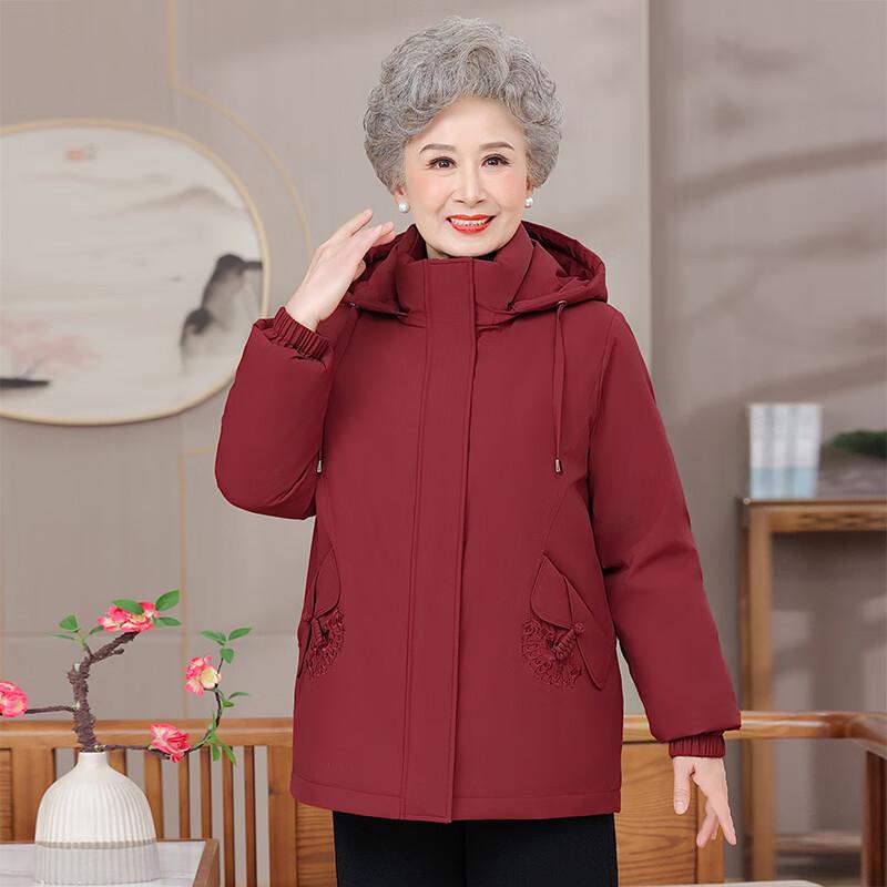 Ronghua Women's Embroidered Hooded Duck Down Winter Jacket