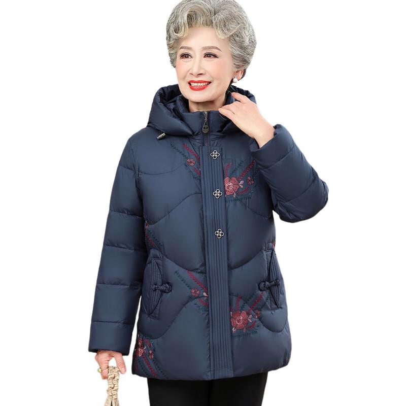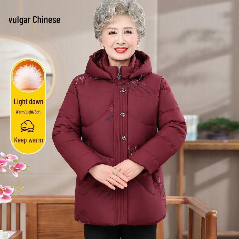 Ronghua Women's Mid-Aged Hooded Thick Duck Down Winter Coat