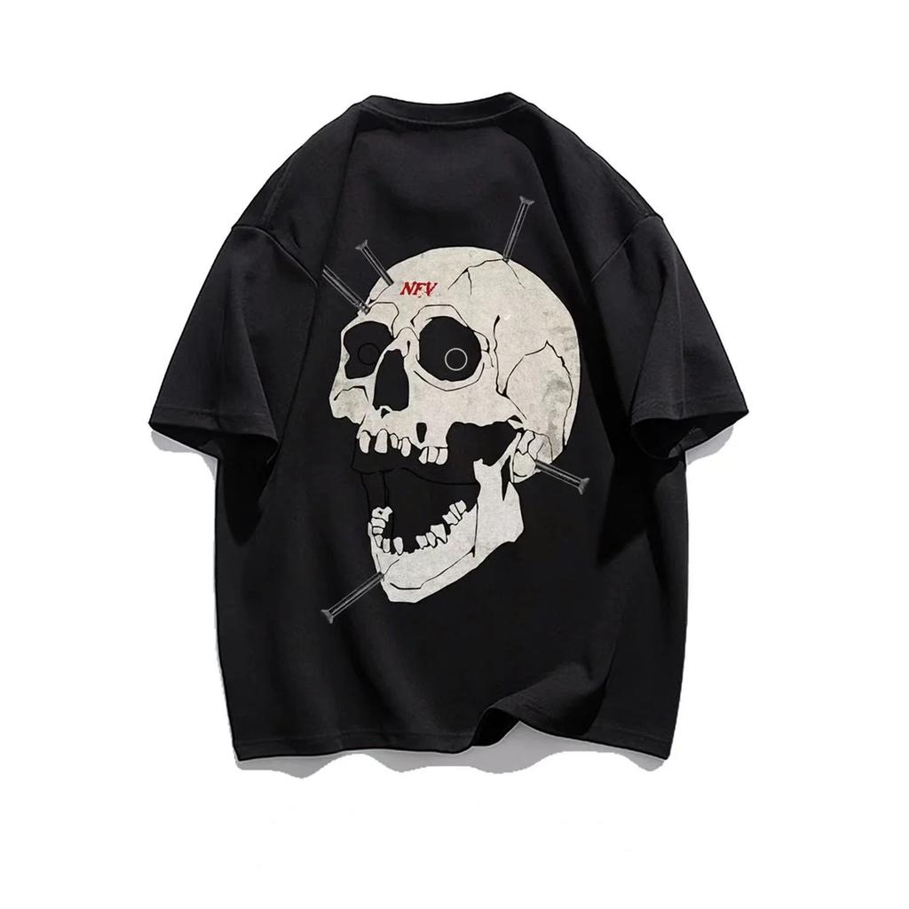 Летняя модная тяжелая ретро мужская футболка с черепом из 100% хлопка с круглым вырезом и принтом, высокое качество, повседневная уличная футболка для фитнеса