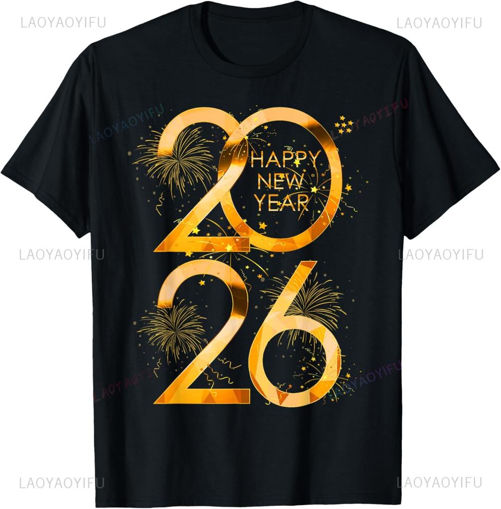 Новогодние товары для вечеринки 2026 Семейная парная футболка Унисекс Летние топы уличной моды Одежда уличной моды Футболка с принтом