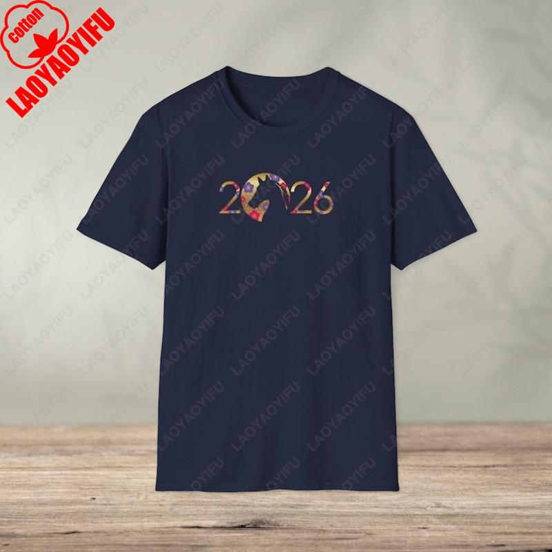 2026 год Огненной Лошади Графическая футболка Модный Счастливого Нового года! Футболки с принтом года Лошади Мужские Женские Рождественская Уличная одежда топы