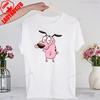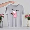 Мультяшная футболка 90-х «Кураж — трусливый пес» Ретро Уличная мода Летняя одежда Топы Подарок Мужчины Женщины Пара Хлопковые футболки