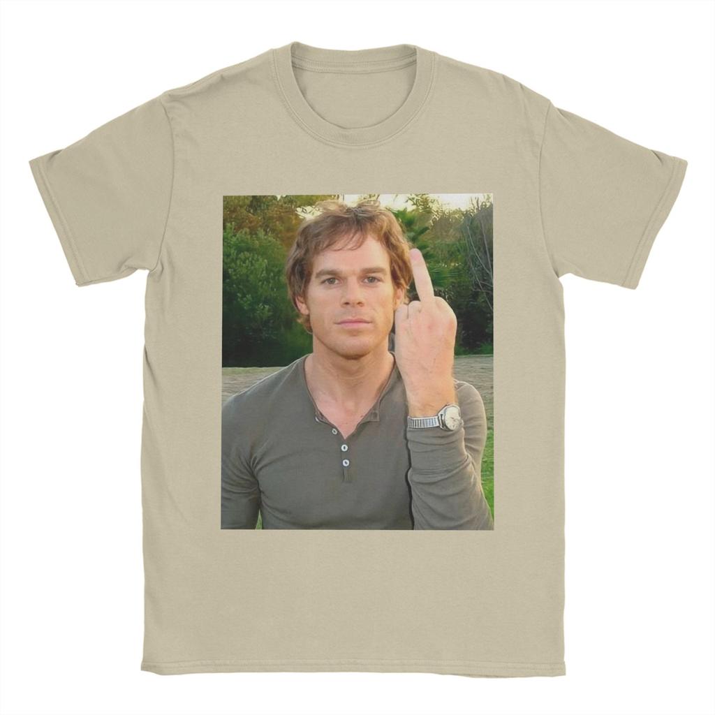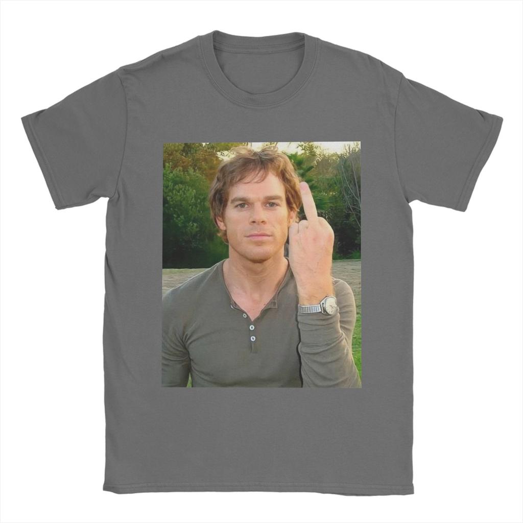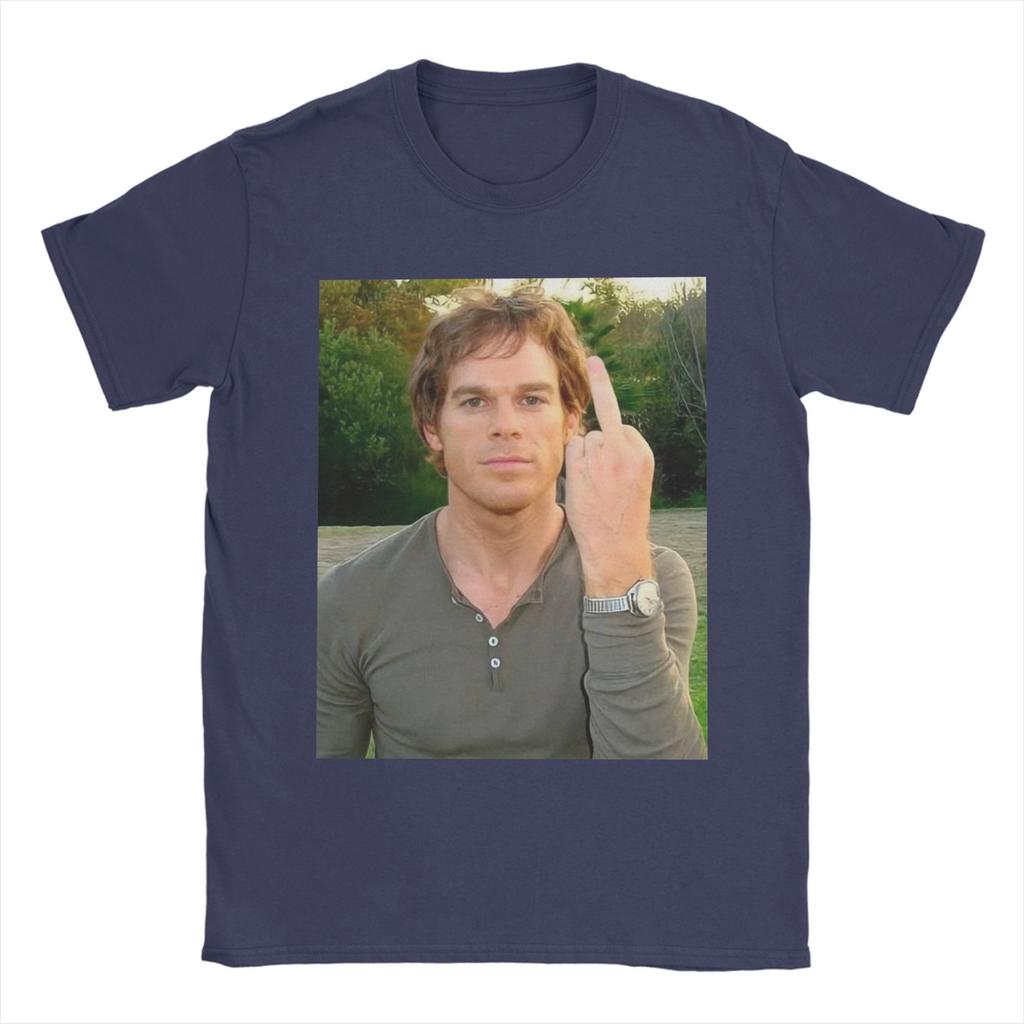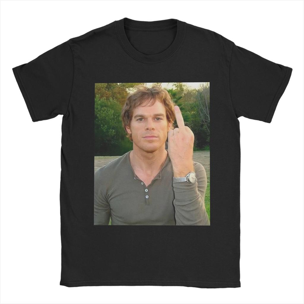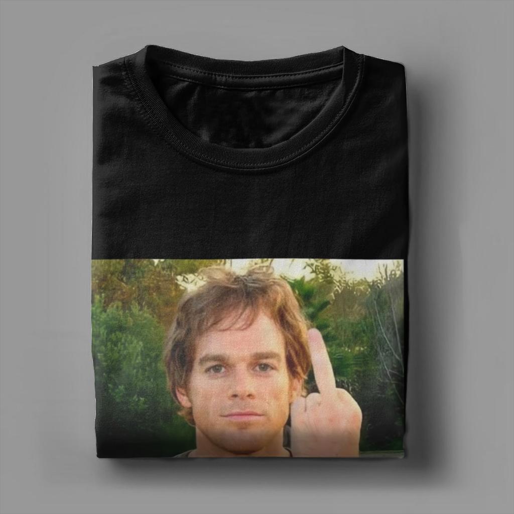 Мужская футболка Декстер Морган показывает средний палец Новинка Хлопковые футболки с коротким рукавом Футболки с круглым вырезом Топы Большой размер
