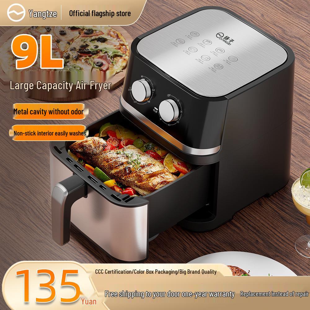 Аэрофритюрница из нержавеющей стали 9 л: Многофункциональная электрическая духовка для жареной курицы и крылышек без масла