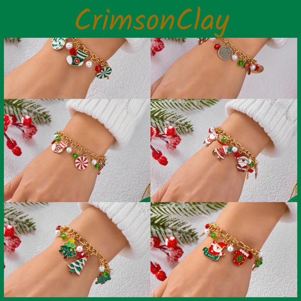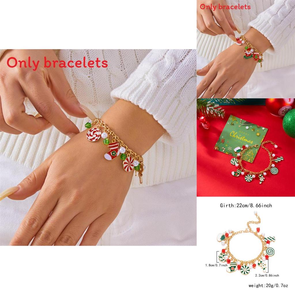 Рождественские браслеты-подвески Санта с разноцветными конфетами-шармами для праздничного подарка