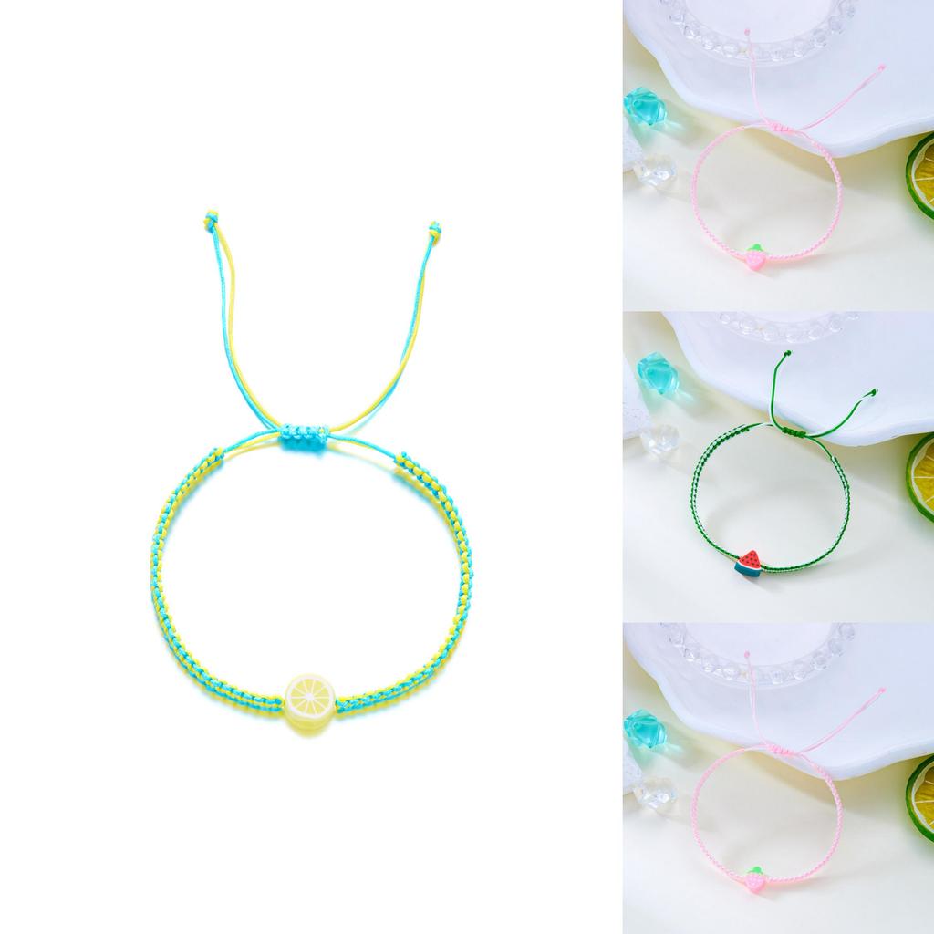 Эти летние фруктовые плетеные украшения ручной работы содержат элементы из мягкой глины в форме арбуза, лимона, клубники, яблока и персика, добавляющие игривый акцент повседневным образам.. Изготовлено из прочной полимерной глины, разработано для удобного ношения. Идеально подходит для празднования дружбы или в качестве сувенира из путешествия, это яркий аксессуар для женщин.. Легкий в уходе, протирайте влажной тканью для поддержания его красочного покрытия.