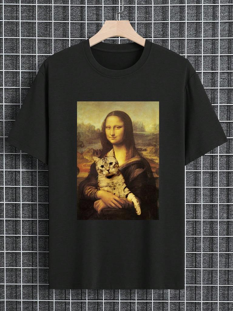 Летняя Новинка Manfinity Dauomo Мужская Футболка с Принтом Мона Лизы Ретро Уличная Одежда Высококачественная Футболка с Круглым Вырезом и Коротким Рукавом для Мужчин — купить товар онлайн с бесплатной доставкой по всему миру!