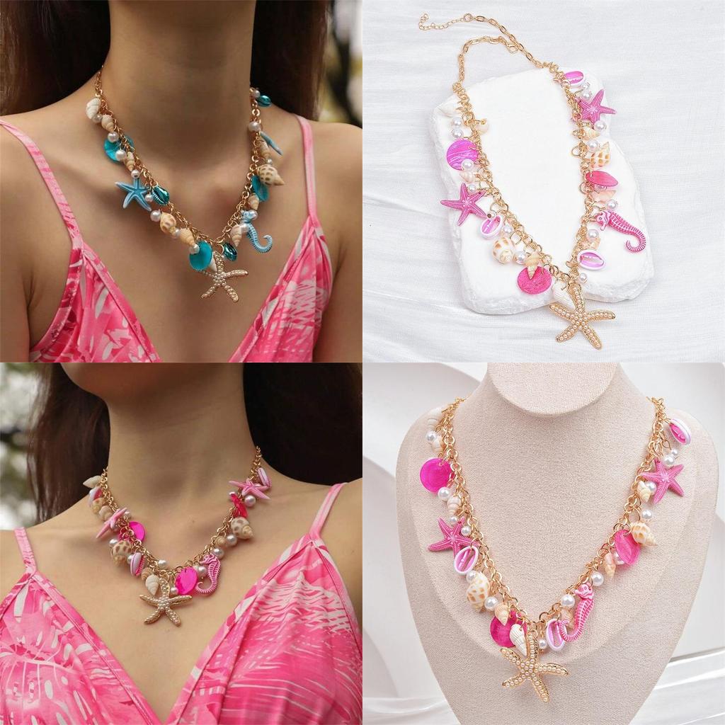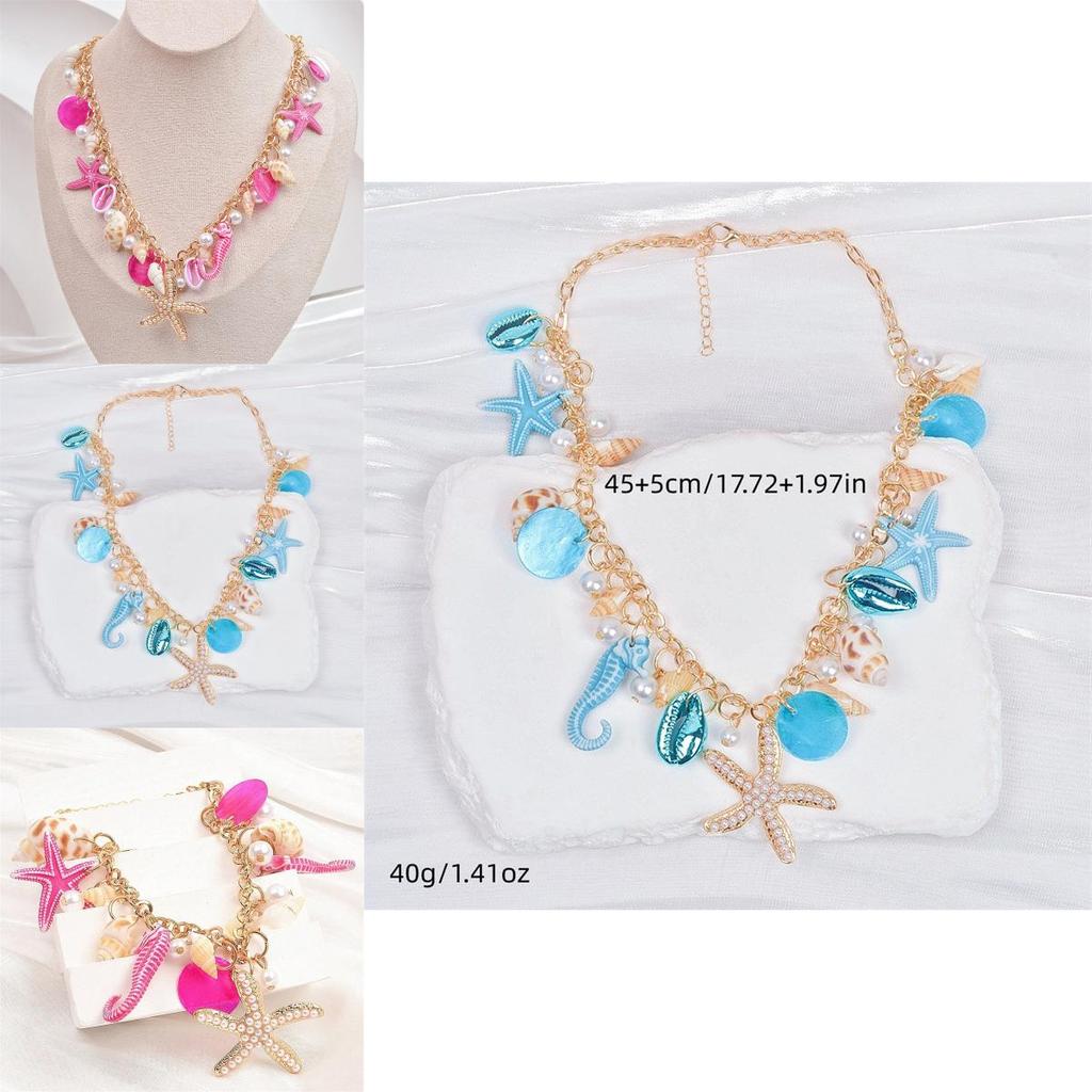 Это женское ожерелье в пляжном стиле с ракушками имеет кулон в форме сердца, украшенный морскими звездами и ракушками, и представляет собой стильный аксессуар для весны.. Изготовлено из цинкового сплава с гальваническим покрытием, Ожерелье идеально подходит для повседневных выходов или модной рабочей одежды.. Протирайте влажной тканью для поддержания блеска.