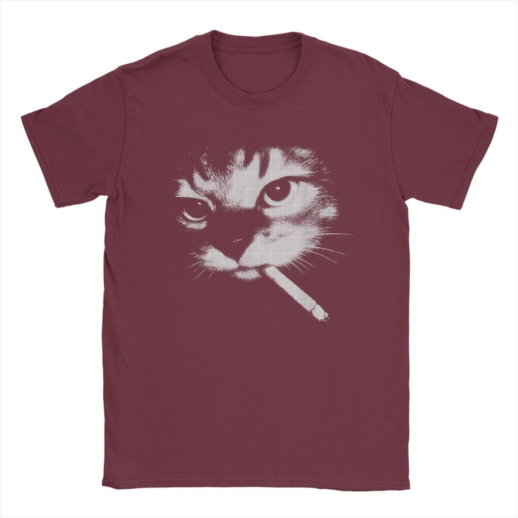 Мужская футболка Смешная Курящая Черная Кошка Лицо Мем Футболки Мода Летняя Футболка Потрясающие Принты Чистый Хлопок Топы Большого Размера